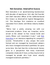 Rick Gonsalves has served as the President and CEO of AmericaFirst Capital Management, LLC, since 2007. He’s considered a thought leader in quantitative investing by his peers, and he specialized in managing client portfolios with AmericaFirst. Away from work, he enjoys hiking and music. Rick...